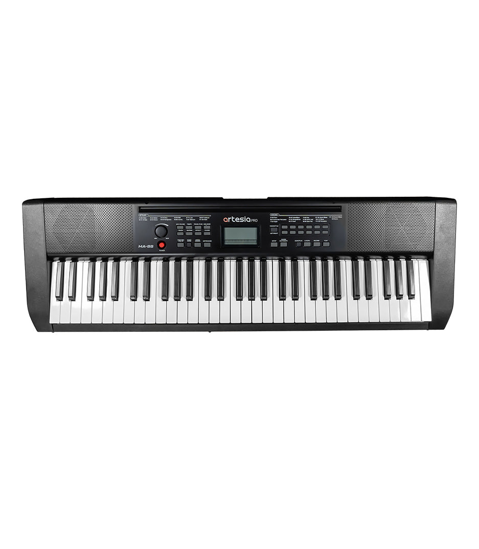 The Artesia MA88 digital keyboard, has 61 standard-size keys with touch response and sensitivity. Perfect choice for a beginner. The multi functional LCD screen makes it really comfortable and easy to access any of its sounds and styles.