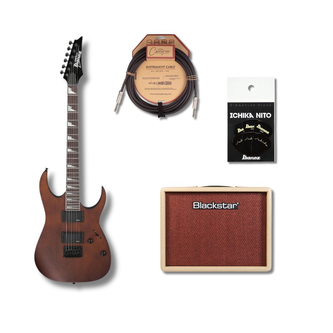 : Bundle, Electric Guitar, Guitars, Musical Instruments, White FridayTags: 24 jumbo frets, Blackstar Debut 15E, Bundle, electric guitar, F106 bridge, Guitar Bundle, Guitar with amp, Ibanez, Ibanez GRG121DX, IBZ-6 pickups, maple neck, Medium frets, Mono-unit output jack, Okoume body, Purpleheart fretboard, Sharktooth inlay, Solid body electric guitar, Walnut Flat, White Friday Bundle