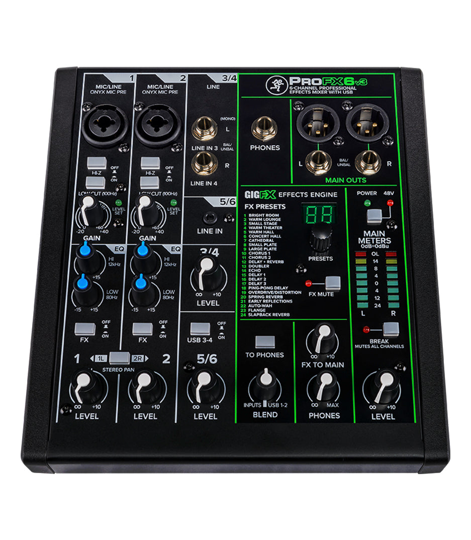 خلاط Mackie ProFX6v3 الاحترافي بست قنوات مع تأثيرات وUSB