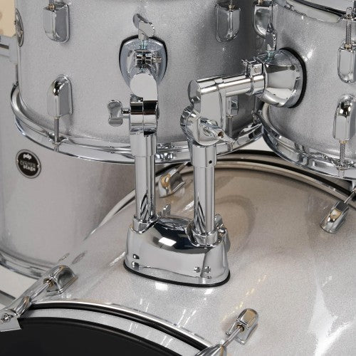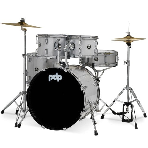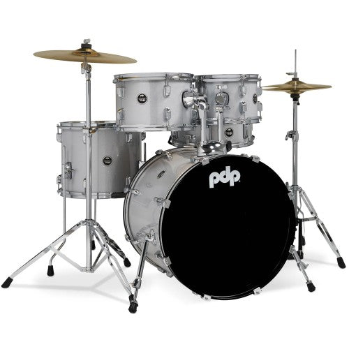 طبول PDP PDCE2015KTDW مجموعة طبول مركزية مكونة من 5 قطع مع أدوات وصنوج - أبيض ماسي لامع
