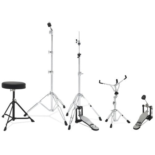 إن تحديد الأجهزة التي ستعمل مع طقمك عملية تستغرق وقتًا طويلاً. لتسهيل الأمور عليك، تضمنت PDP كل ما تبحث عنه في الطقم. ستحصل على مجموعة من الصنجات عالية الجودة وحوامل الصنجات وكراسي الطبول. تتضمن الطقم أيضًا عصي! تبدو دواسة الركل المضمنة سلسة وسريعة الاستجابة بينما تمنع نتوءات الطبلة التلسكوبية الركلة من الابتعاد عنك. وكمكافأة إضافية، أضافت PDP أجهزة مزدوجة الدعامات لإضفاء المزيد من الثبات على طقمك.