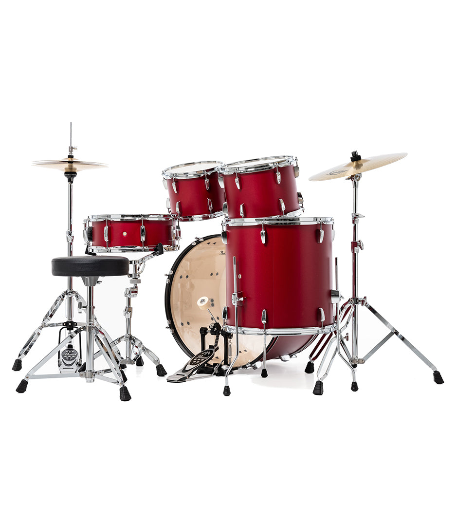 Pearl Roadshow 5pc Drum Set 2216B/1008T/1209T/1616F/1455S with Cymbal & Hardware Matte Red Finish