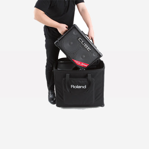 Like all amps in Roland’s renowned CUBE series, the CUBE Street EX is built to last. It features a high-strength ABS injection-molded body that’s passed rigorous durability testing, ensuring reliability in all kinds of outdoor performing situations. In addition to being tough, the CUBE Street EX is surprisingly light, making the amp a breeze to carry from gig to gig. The carrying case in the CUBE Street EX PA Pack provides shoulder straps, plus pockets for stowing cables, AC adapters, and extra batteries. The case also features a water-resistant covering to protect the amps from moisture while traveling.
