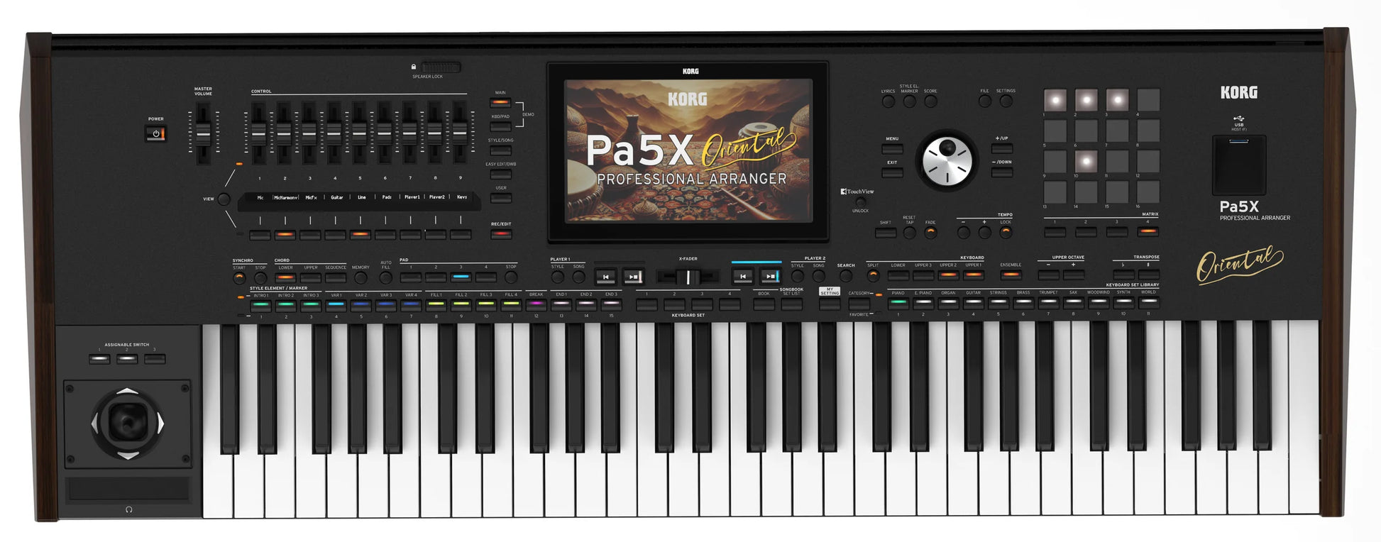 Pa5X is the new flagship in the KORG Professional Arranger lineup, redefining an arranger keyboard. Completely redesigned with a state-of-the-art sound engine and a streamlined color-driven user interface, Pa5X produces a stunningly rich and unique sonic experience that inspires you to create and perform!